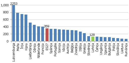 Attēls. Banku sektora aktīvi pret IKP (2012. gada beigas, %)