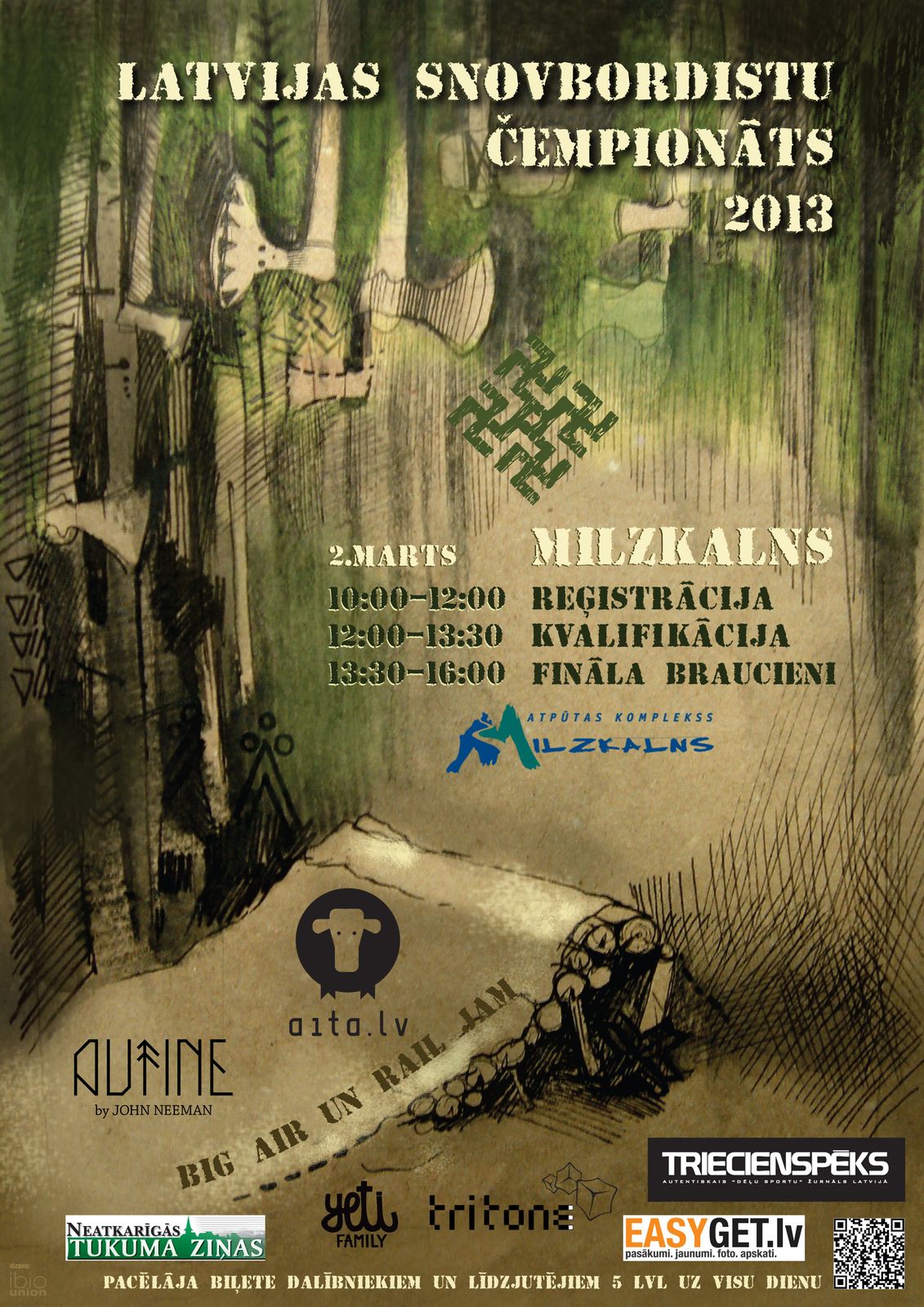 «Latvijas snovbordistu čempionāts 2013» norisināsies šī gada 2. martā Smārdes pagasta Milzkalnā. Titula izcīņa norisināsies uz šobrīd diviem lielākajiem tramplīniem Latvijā – «step down» un «step up jump».
