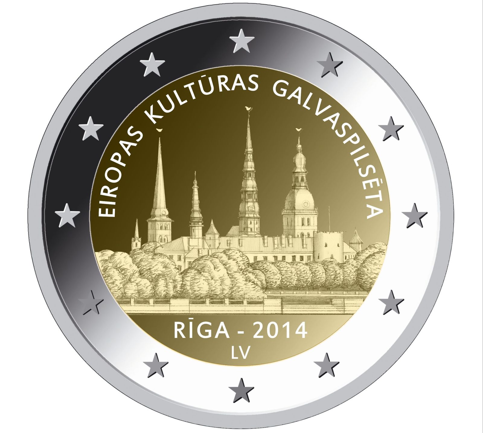 Eiropas Savienības Padome ir apstiprinājusi dizainu un 2014. gada 27. martā Eiropas Savienības Oficiālajā Vēstnesī publicēts paziņojums par pirmo Latvijas īpašā dizaina 2 eiro monētu, kas veltīta 2014. gada Eiropas kultūras galvaspilsētai Rīgai.