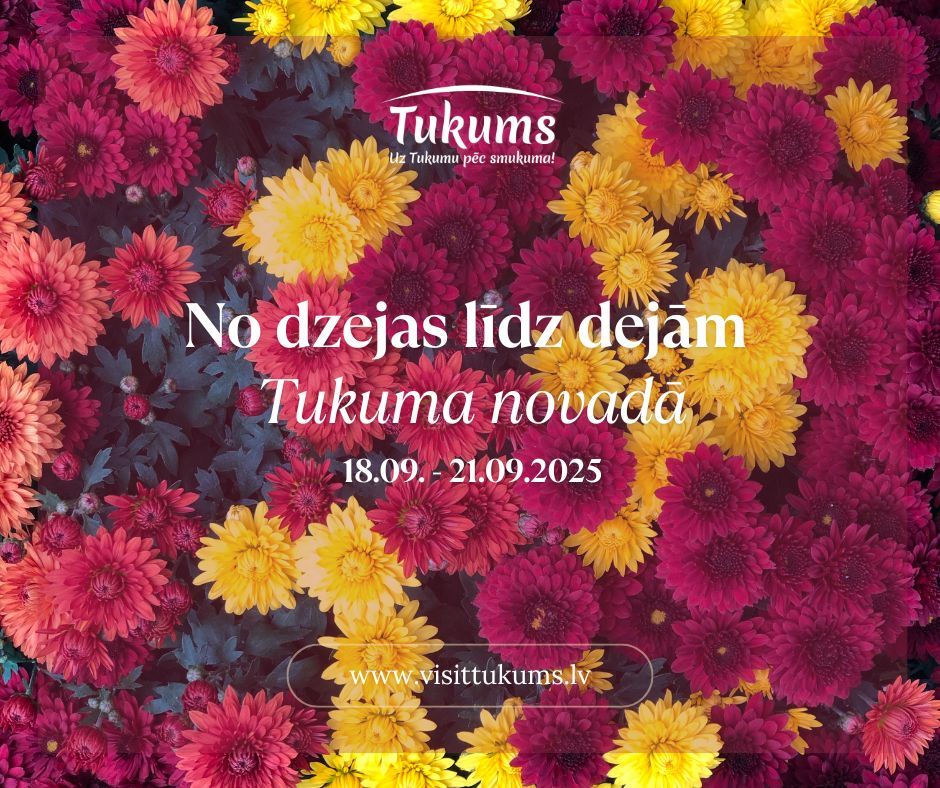 Rudens Tukuma novadā atnāk ne tikai ar nu jau dažām krāsainām lapām, bet arī ar bagātīgu kultūras, mūzikas un garšu programmu. No dzejas debesīs līdz jūras veltēm uz šķīvja, no senatnes cīņām līdz mūsdienu seriālu aizkulišu stāstiem – tik krāsaina būs septembra vidus nedēļas nogale Tukuma pusē!