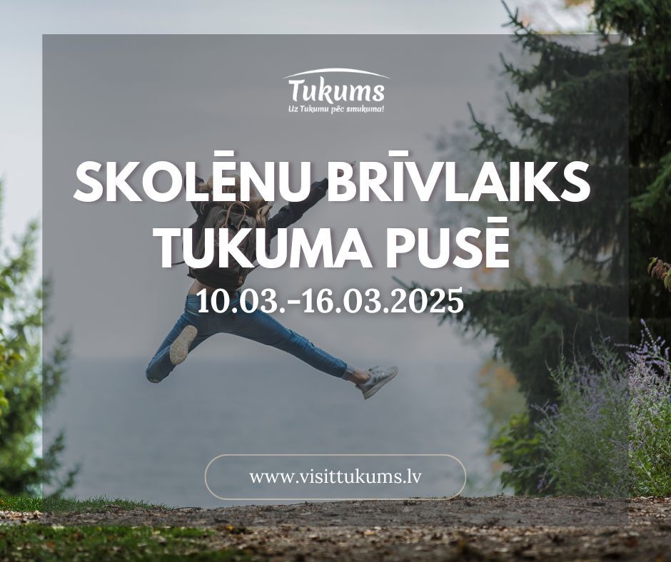 Šajā nedēļas nogalē Tukumā un apkārtnē notiks daudz aizraujošu pasākumu visām gaumēm! Gardēžiem būs iespēja baudīt nesteidzīgas vēlās brokastis Abavas senlejā esošajā Kalnmuižā un "Kaffe Halle" Tukumā, bet kultūras cienītājiem – izbaudīt smieklu un mūzikas pilnu vakaru koncertā "Nerātnie joki un dziesmas" vai ļauties klaviermūzikas burvībai Aurēlijas Šimkus un Daumanta Kalniņa izpildījumā. Mazos apmeklētājus gaida jautras aktivitātes no mākslas laboratorijas un piepūšamo atrakciju pilsētiņas līdz radošām nodarbībām ar Evitu Feju. Teātra mīļotājiem piedāvājumā iedziļināties spēcīgā stāstā izrādē "Jūtu mulsumā. Ārprāts", bet kormūzikas cienītājiem – svinēt pavasara atnākšanu koncertā "Pavasara iezvanīšana". Un, protams, būs arī tradīciju ievērošana, sagaidot pavasara saulgriežus. Izvēlies sev piemērotāko pasākumu Tukuma pusē un padari šo nedēļas nogali īpašu!