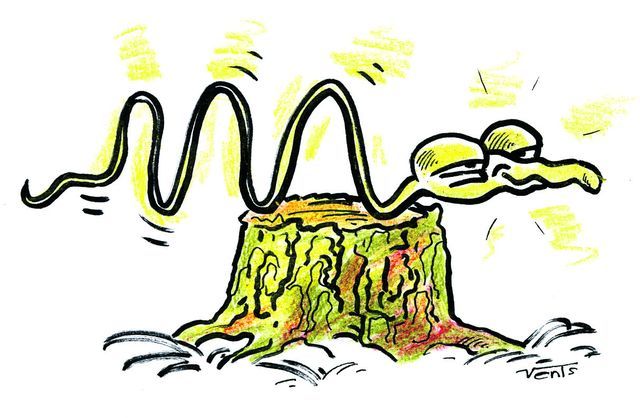 O, iemidzinošā pavasara saule! Čūska Monika juta, ka diegveida stiepšanās kūrēm ir rezultāts - citkārt viņa uz celma savijās trijos gredzenos, bet tagad jau - sešos. Vienīgā nelaime - galva nestiepās garāka. Tā bija un palika vienādiņ vidējas peles lielumā, un - jo tievāks un vijīgāks kļuva ķermenis, jo grūtāk nācās staipīt visur līdzi galvu....