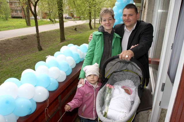 Trešdien, 7. maijā, Valdis Anmanis kopā meitiņu Elzu veda mājās mantinieku - brāli Kārli. Visai Slampei notikums zināms. Tētis rīta pusē aizbraucis uz Tukuma un pasūtījis balonu virteni piecu metru garumā. Zili baltā krāsā. Piestiprinājis pie balkona, lai taču visi miesta ļaudis zina, ka dēls mājās.