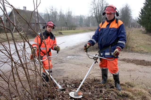 <p>A/s «Kurzemes ceļi» Tukuma 17. rajona Kandavas iecirkņa darbinieki Artis Lauva un Juris Jastrebovs Vānē lielceļa malās ar trimeriem nopļauj koku atvases un krūmus. Ceļmalām jābūt allaž tīrām un pārredzamām. Laiciņš krūmu nīdēšanai piemīlīgs - nav jākārpās sniega kupenās. Šniks - un gatavs! Vīri dienā iztīra ceļmalas pāris vai pat trīs kilometru garumā. Teic, ka cilvēki kļuvuši šmucīgi - visu, kas lieks, palaiž pa roku galam, tādēļ ceļa malas, grāvji pilni ar drazu. Vienreiz vīri atraduši <em>piecīti</em> - tas nu gan bijis pārsteigums!</p>