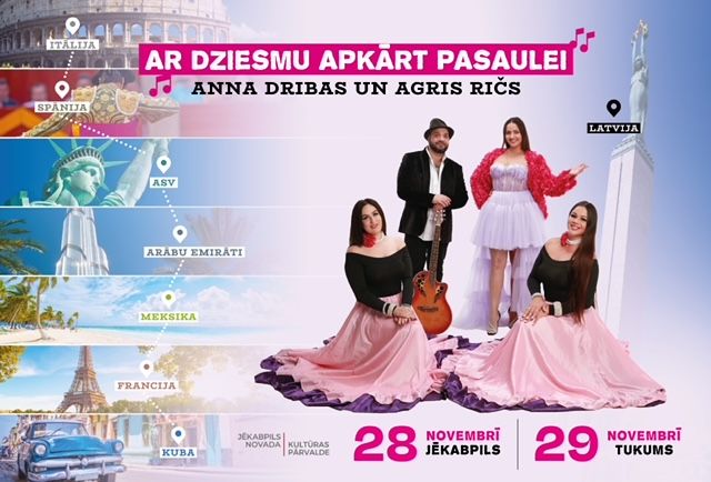 Aicinām uz koncertiem! Jūs gaida koncertprogramma kur mēs brauksim apkārt pasaulei un jūs dzirdēsiet kubiešu, arābu, spāņu, itāļu, latviešu, romu, meksikāņu, portugāļu dziesmas un citas smukas kompozīcijas.