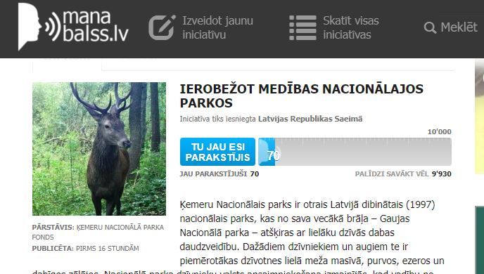 Portālā «Mana balss» aicina parakstīties par medību ierobežošanu nacionālajos parkos