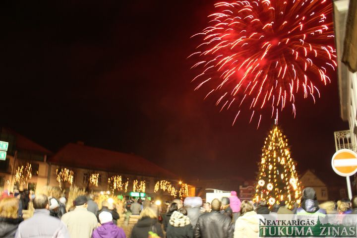 Tukumā Jauno gadu sagaidīja galvenokārt pilsētas centrā Brīvības laukumā un Katrīnas laukumā pie svētku eglēm, vērojot svētku salūtus. Pirms tam ieklausoties valsts vadoņu un pilsētas mēra Jura Šulca uzrunās.