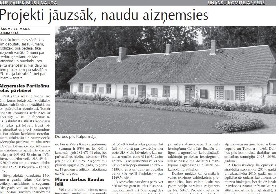 Finanšu komitejas sēdē, kas šim deputātu sasaukumam visdrīzāk bija pēdējā, tika pieņemti vairāki lēmumi par kredītu ņemšanu dažādu attīstības un būvdarbu projektu īstenošanai. Par daļu no šiem projektiem jau rakstījām 23. maija laikrakstā, bet par citiem – šoreiz.