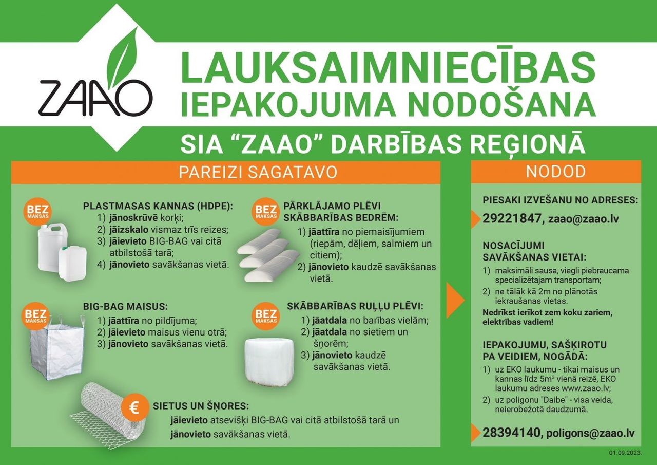 Par sakoptu vidi diendienā jārūpējas arī lauksaimniekiem, jo viņu saimnieciskajā darbībā rodas dažādi otrreizējas pārstrādes jeb lauksaimniecības iepakojumi – plēves, lielie maisi, ķīmisko līdzekļu, minerālmēslu un citu šķidrumu kannas. Kā panākt, lai arvien mazāk ir to zemnieku, kuri šo iepakojumu izmestu mežā vai grāvmalā, skaidrojām, sarunājoties ar lauksaimniekiem, atkritumu apsaimniekotājiem un jomas ekspertiem.