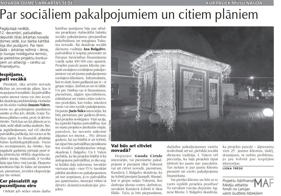 Vakar, 12. decembrī pašvaldības deputāti tikās ārkārtas novada domes sēdē, kur darba kārtībā bija divi jautājumi. Par tiem šādā – ārkārtas režīmā lēma, jo tuvojas noslēguma termiņi, lai pieteiktos projektu konkursiem, un attiecīgi – cerētu finansējumam.
