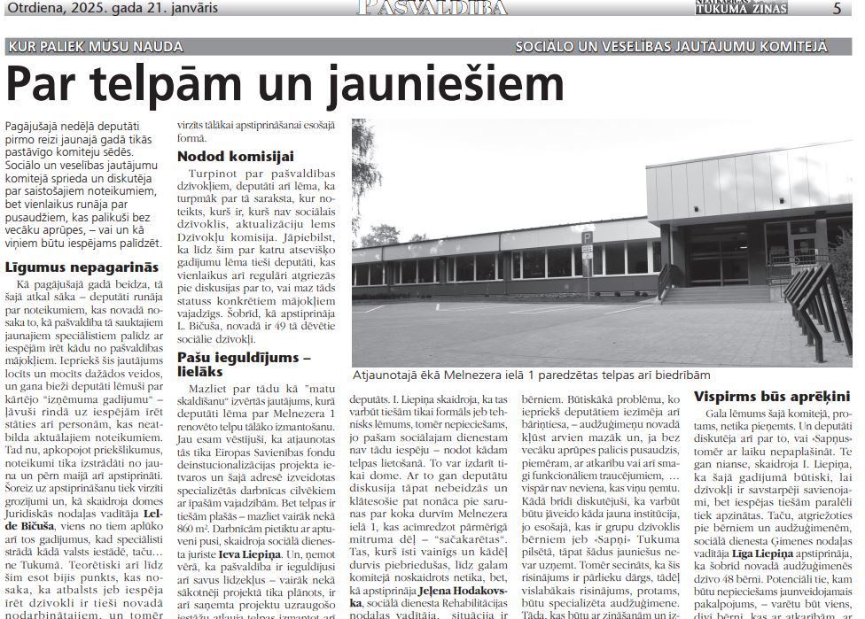 Pagājušajā nedēļā deputāti pirmo reizi jaunajā gadā tikās pastāvīgo komiteju sēdēs. Sociālo un veselības jautājumu komitejā sprieda un diskutējas par saistošajiem noteikumiem, bet vienlaikus runāja par bez vecāku aprūpes palikušajiem pusaudžiem – vai un kā viņiem būtu iespējams palīdzēt.