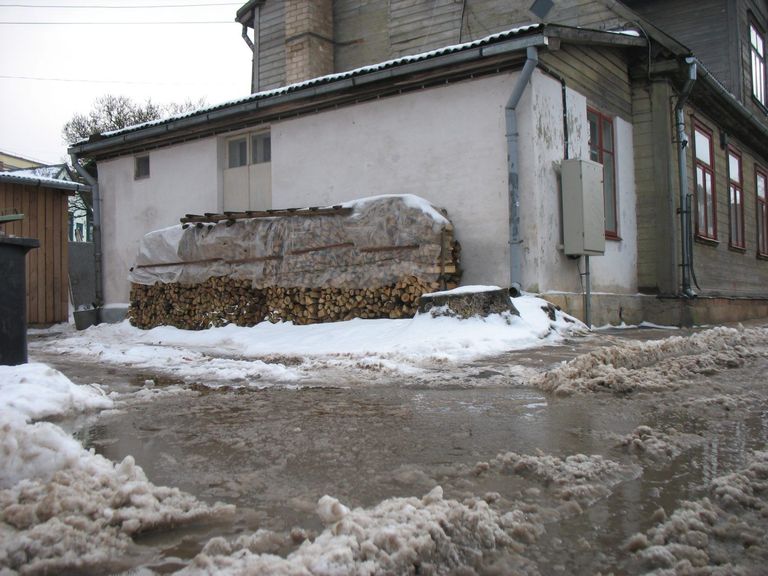 Lai arī atkusnis lielāko daļu sniega jau paņēmis līdzi un arī sals krietni mazinājies, no rīta ietves ir slidenas, daudzviet - mirkst ūdenī, arī ledus no jumtiem apdraud gājējus.