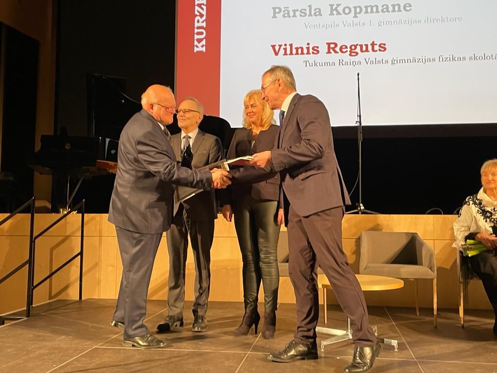 Šodien, 27. janvārī Draudzīgā aicinājuma fonds pirmoreiz sveica pedagogus par mūža ieguldījumu izglītībā. 26 pedagogu vidū, kas Nacionālajā bibliotēkā saņēma zinību simbola – Pūces balvu, bija arī novadnieks, fizikas skolotājs Vilnis Reguts, kurš daudzus darba gadus veltījis Tukuma Raiņa valsts ģimnāzijas skolēnu izglītošanai.