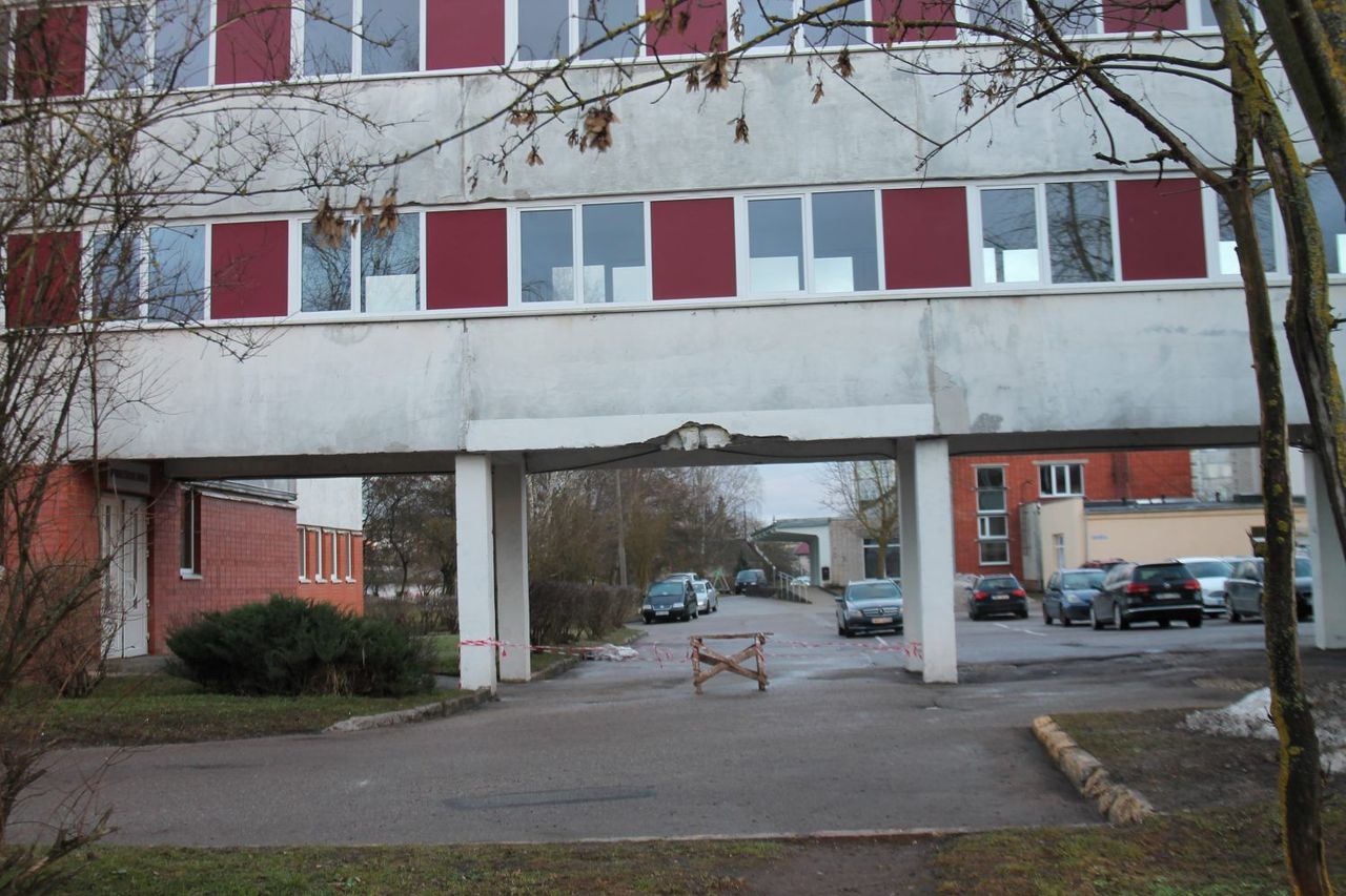 Pāreja, kas savieno poliklīnikas un slimnīcas korpusus un no kuras tagad atdalās apmetums, tika sabojāta pagājušā gada nogalē.