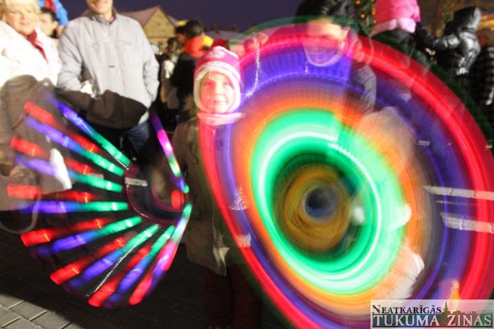 Tukumā iedegta Ziemassvētku egle