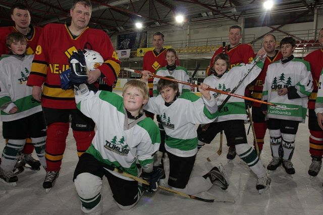 Tukuma jaunie hokejisti apspēlē savus tēvus