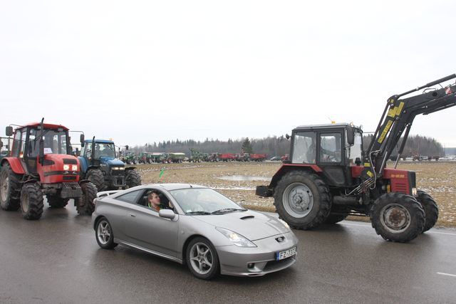 Ventspils šoseju Tukuma pievārtē nobloķē ap 100 traktoru