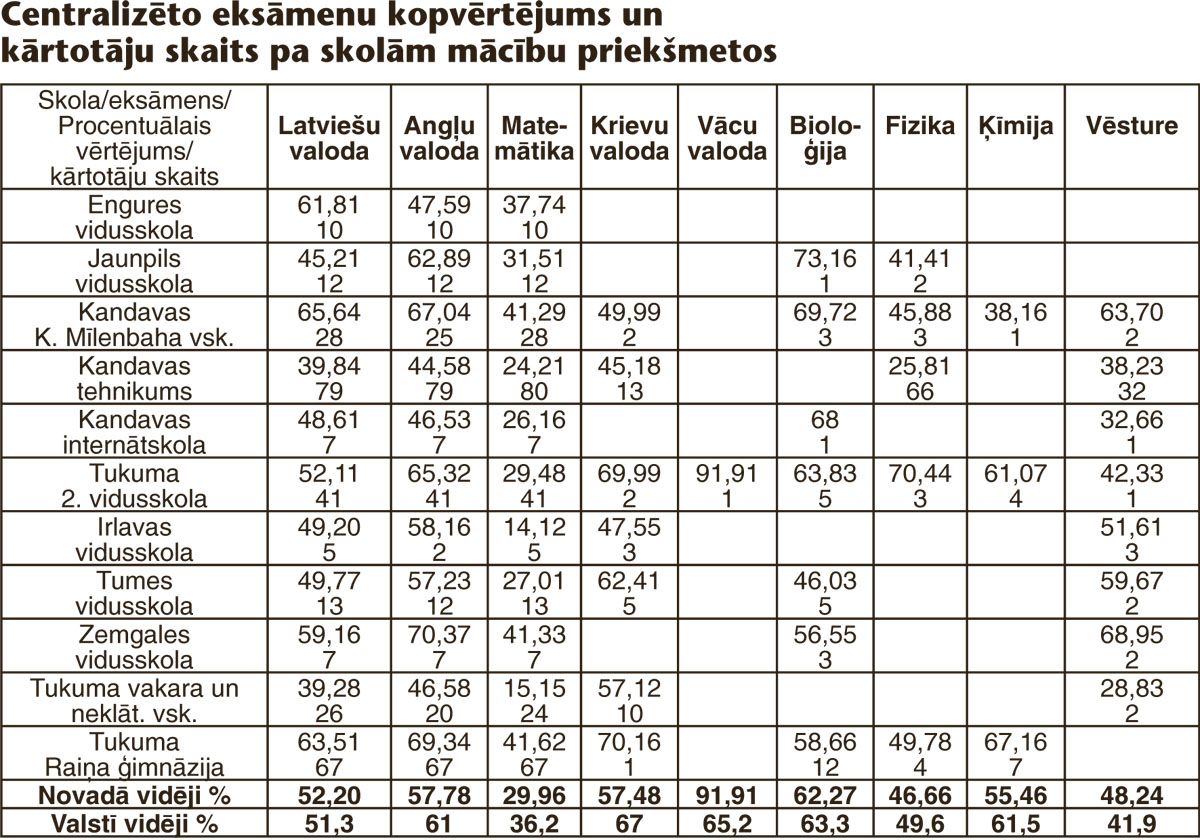Tukuma novada Izglītības pārvalde skolām izsniegusi centralizēto eksāmenu sertifikātus