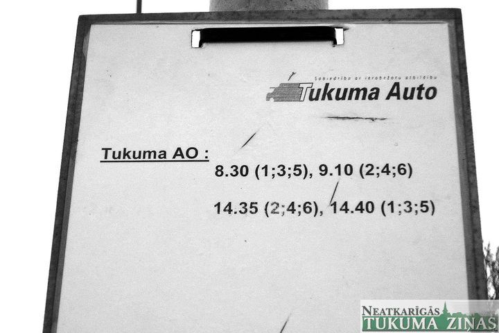Lasītājs jautā: – Sestdien vairāki cilvēki Milzkalnes autobusu pieturā gaidījām autobusu uz Tukumu. Pie pieturas redzams autobusu saraksts, kurā rakstīts, ka autobusam jāizbrauc no Milzkalnes 14.35. Laiku pastāvējuši un izgaidījušies, konstatējām, ka autobuss sestdienās no Milzkalnes uz Tukumu iet 14.05.