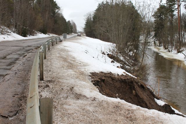 <em>- Nesen biju aizbraucis uz avotiņu Tīles līkumā pēc ūdens un ievēroju, ka pašā līkumā, kur ceļu no upes norobežo barjera, ir pamatīgs izskalojums. Ja šajā vietā drīzumā neko nedarīs, tad taču iegāzīsies ne vien ceļa mala, bet arī braucamā daļa. Cik tur daudz trūkst, ka tā var notikt! Turklāt tagad no kalna lejā gāžas sniega ūdens un šo vietu izskalo vēl vairāk.</em>
