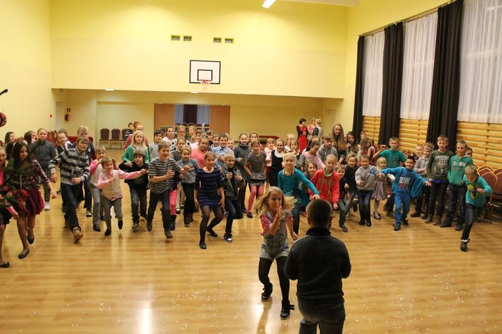 Tieši tā 13. decembra priekšpusdienā izskanēja ielūgums uz svētku ballīti Ledus hallē, kurā bija ieradušies gan mazuļi kopā ar mammām, gan jau lielāki bērni, ģērbušies krāšņos tērpos un, protams, pats zaķēns Toms, kurš diriģēja visu parādi. Bija pienācis laiks Skaņu skolas «DORE» Ziemassvētkiem.