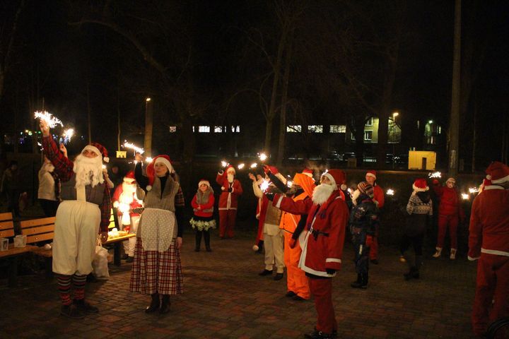 Gaismotā taciņa rūķu darbīgo brigādi veda uz ikgadējo gājienu PII «Karlsons» Tukumā. Paldies bērnu vecākiem, kas pārtapa par rūķiem!