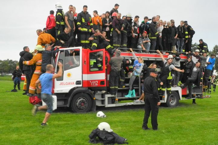 Piektdien, 25. septembrī, pļavā pretī Jelgavas pilij, Lielupes krastā, norisinājās starptautiskas sacensības ugunsdzēsības sportā «Brašais ugunsdzēsējs», kur spēkiem mērojās 38 komandas no visas Latvijas un Lietuvas. Sacensībās dalībnieki sacentās četrās grupās – VUGD struktūrvienību, brīvprātīgo ugunsdzēsēju, jauniešu un sieviešu grupa.