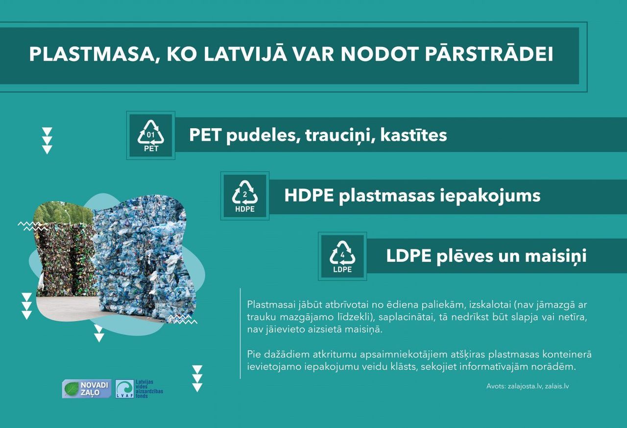 Jau gadu Latvijā spēkā ir "Plastmasu saturošu izstrādājumu patēriņa samazināšanas likums", kas tika pieņemts, pildot Eiropas Parlamenta un Padomes 2019. gada 5. jūnija direktīvu, lai novērstu un samazinātu konkrētu plastmasas izstrādājumu ietekmi uz vidi un cilvēka veselību. Ar šo vienošanos eiropieši pieteica karu vienreizlietojamai plastmasai, kas bieži vien nav pārstrādājama un nonāk vidē. Vienreizlietojamās plastmasas patēriņa ierobežošanu vēl paredzēts turpināt un pēc vienreizlietojamiem traukiem un galda piederumiem sekos citu plastmasas izstrādājumu tirdzniecības pakāpeniska aizliegšana.