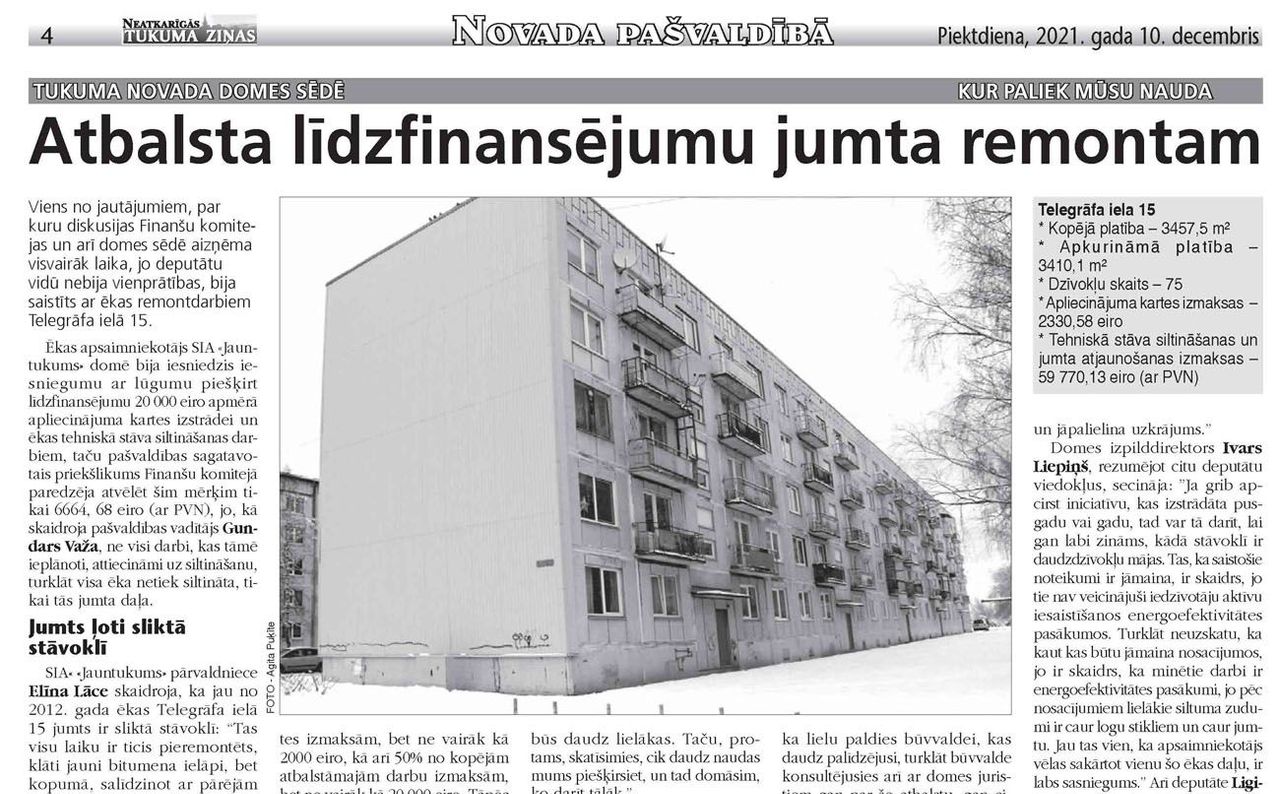 Viens no jautājumiem, diskusijas par kuru Finanšu komitejas un arī domes sēdē aizņēma visvairāk laika, jo deputātu vidū nebija vienprātības, bija saistīts ar ēkas remontdarbiem Telegrāfa ielā 15.