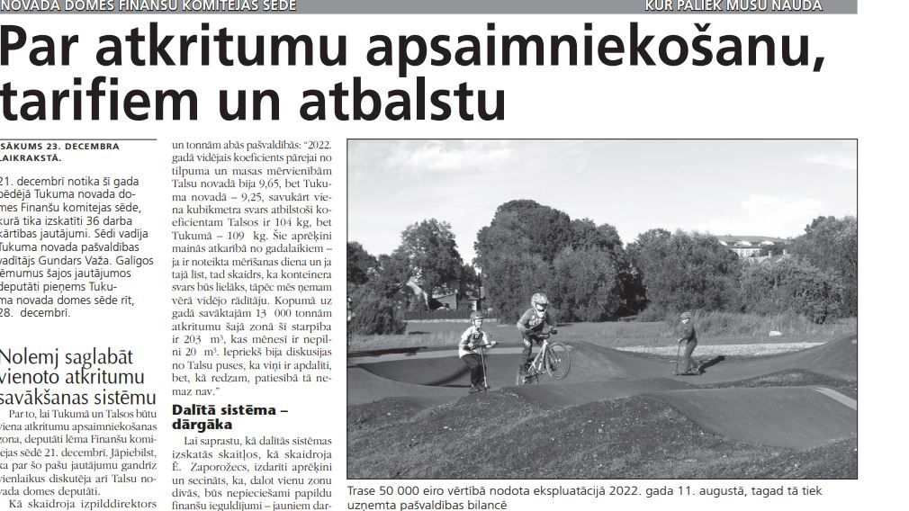 Par atkritumu apsaimniekošanu, tarifiem un atbalstu