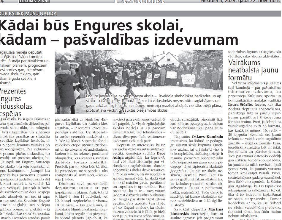 Turpinājums. Sākums 16. februāra laikrakstā Jau vēstīts, ka pagājušās nedēļas komiteju sēdē deputāti tomēr lēma tālākai izskatīšanai virzīt jautājumu par skolu tīkla reformu. Tas, neskatoties uz to, ka arvien biežāk izskanēja arī varanti, kas piedāvāja reformu nedaudz piebremzēt, ņemot vērā, ka valstiskā līmenī diskusijas par jauno, Izglītības un zinātnes ministrija virzīto skolu finansēšanas modeli vēl...