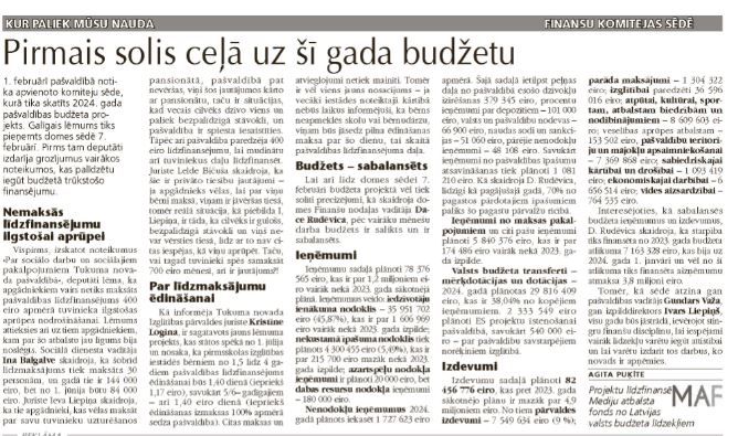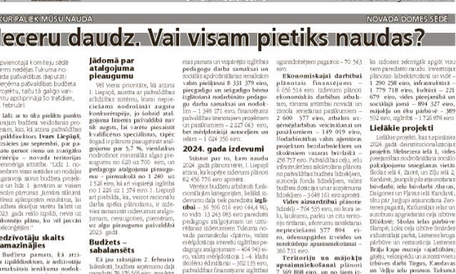 1. februārī pašvaldībā notika apvienoto komiteju sēde, kurā tika skatīts 2024. gada pašvaldības budžeta projekts. Galīgais lēmums tiks pieņemts domes sēdē 7. februārī. Pirms tam deputāti izdarīja grozījumus vairākos noteikumos, kas palīdzētu iegūt budžetā trūkstošo finansējumu.