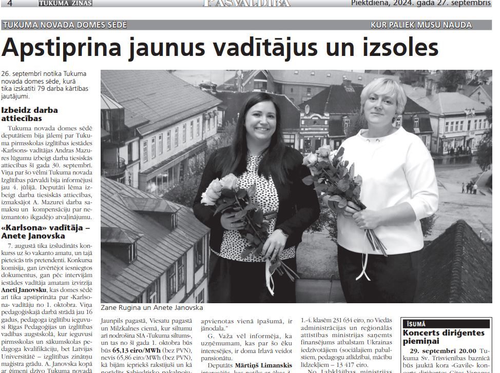 26. septembrī notika Tukuma novada domes sēde, kurā tika izskatīti 79 darba kārtības jautājumi.