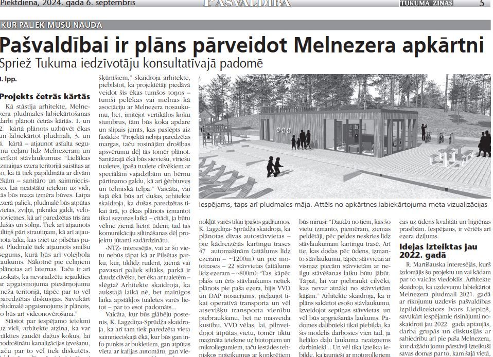 Kur paliek mūsu nauda? Spriež Tukuma iedzīvotāju konsultatīvajā padomē Melnezers un tā pludmale ir lielākā atpūtas vieta pie ūdens pilsētā vai, pareizāk, tuvu tai, kas turklāt tiek izmantota visu gadu. Gadiem, pat gadu desmitiem tukumnieki aicinājuši šo vietu labiekārtot, taču sarežģītais ezera novietojums – Latvijas valsts mežu teritorijā un vēl salīdzinoši nesen Engures novadā,...