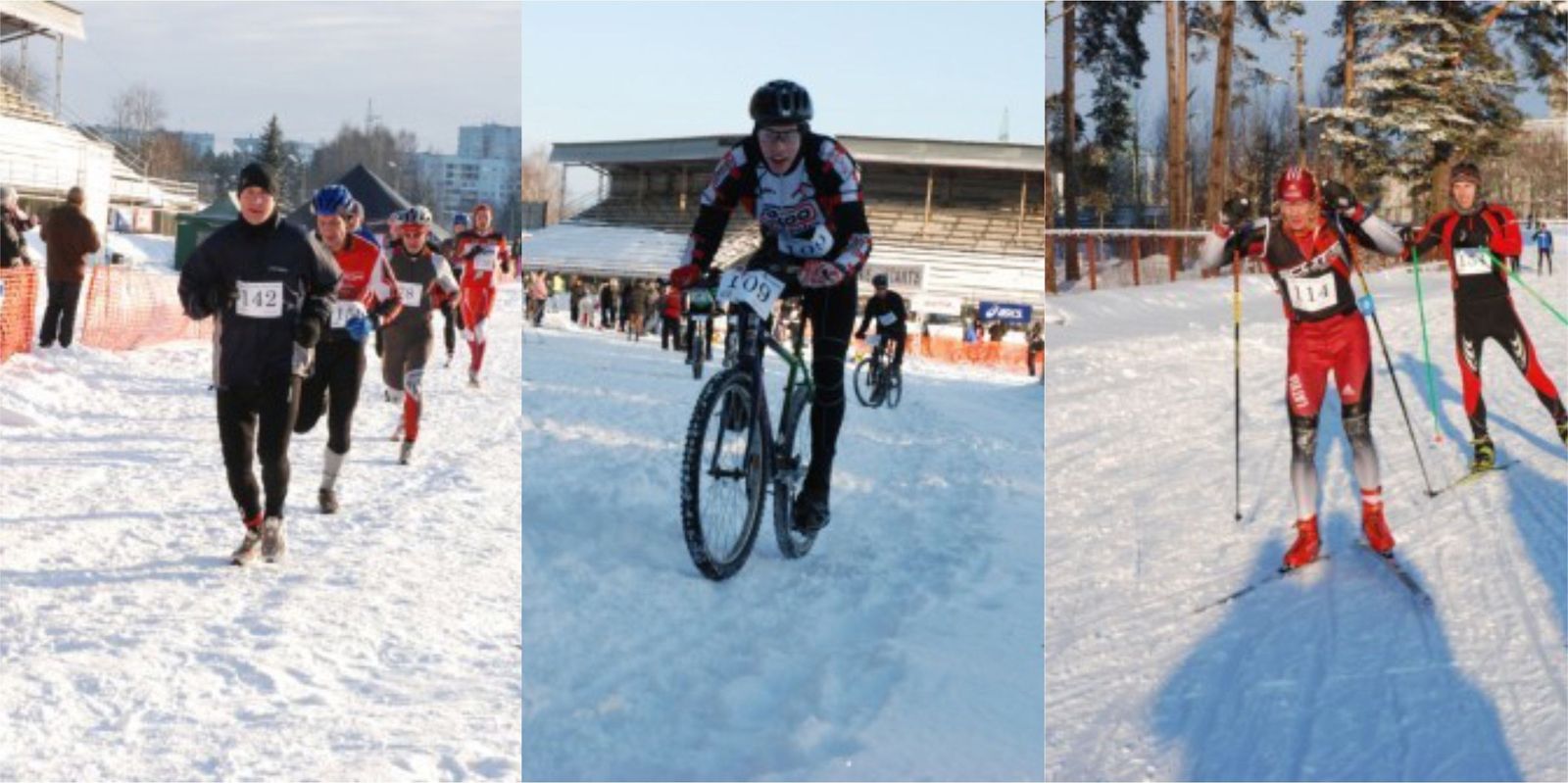 Pieaugušajiem sacensību sākums 12.00. Sacensības norisināsies Biķernieku sporta kompleksa teritorijā pa 1,6 km skriešanas apli, 3,6 km riteņbraukšanas apli un 2,4 km slēpošanas apli.