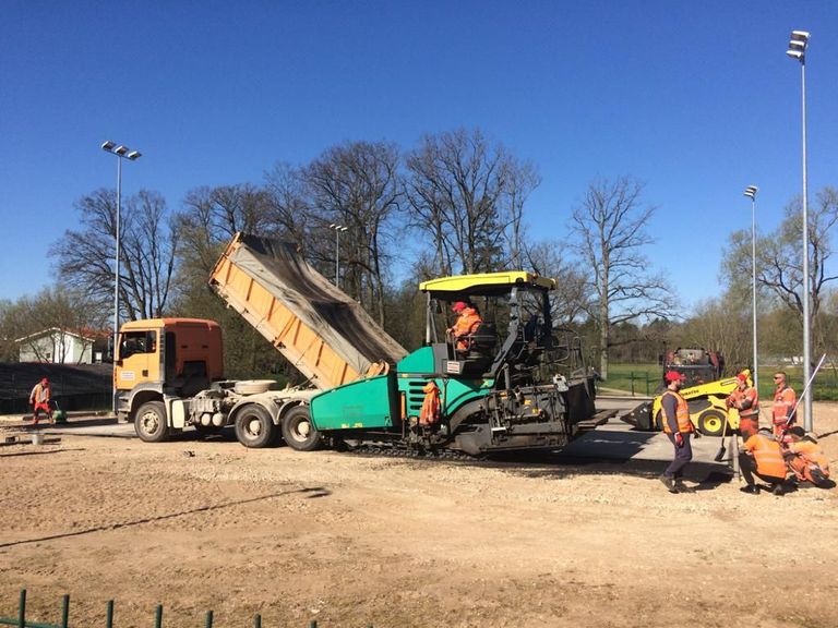 Šodien, 5. maijā, Tukumā uzsākta āra basketbola laukuma asfaltēšana. Darbus veic SIA «Strabag».