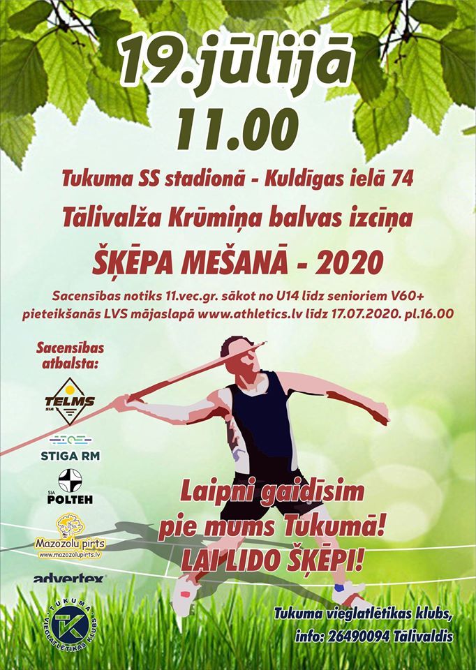 Svētdien, 19. jūlijā Tukuma sporta skolas stadionā, Lauktehnikā notiks Tālivalža Krūmiņa balvas izcīņa šķēpa mešanā – šogad 23. reizi. Skaistas balvas, kausi un medaļas jau sagatavojas un tiks pasniegtas uzvarētājiem visās 11 vecuma grupās.