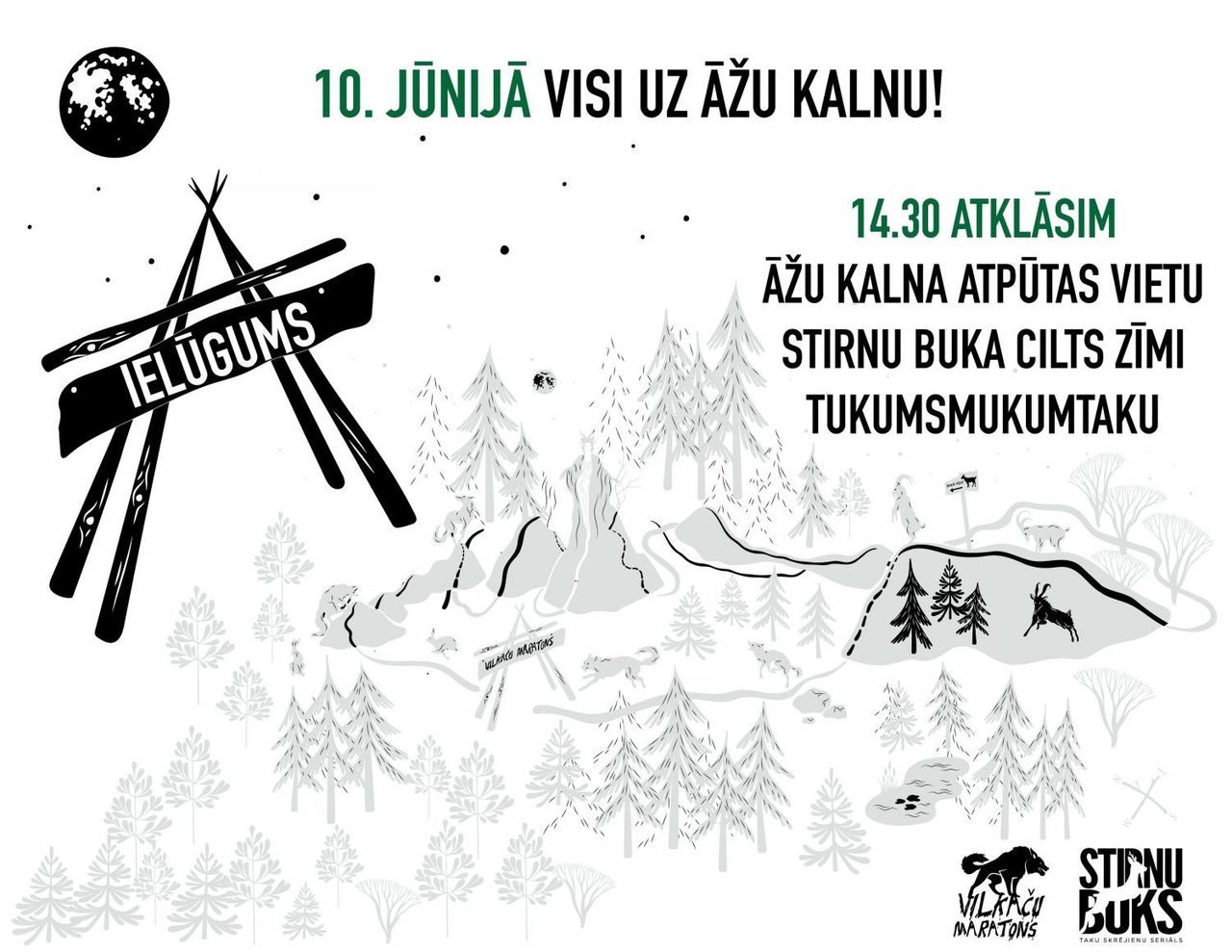 Arī šogad, 10. jūnijā nepilns simts izturības skrējēju lielmeistaru pulcēsies vietā, kur pirms 10 gadiem piedzima skrējēju iemīļotais taku skrējēju seriāls “Stirnu buks”, un Āžu kalna masīvā piedalīsies, iespējams, savā grūtākajā maratonā Baltijas valstīs.