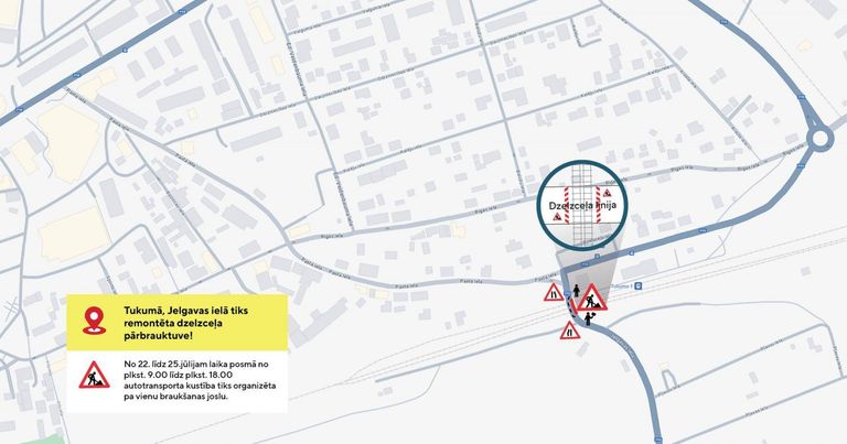 Uz «Tukuma I» dzelzceļa pārbrauktuves – lēnāka pāri tikšana!