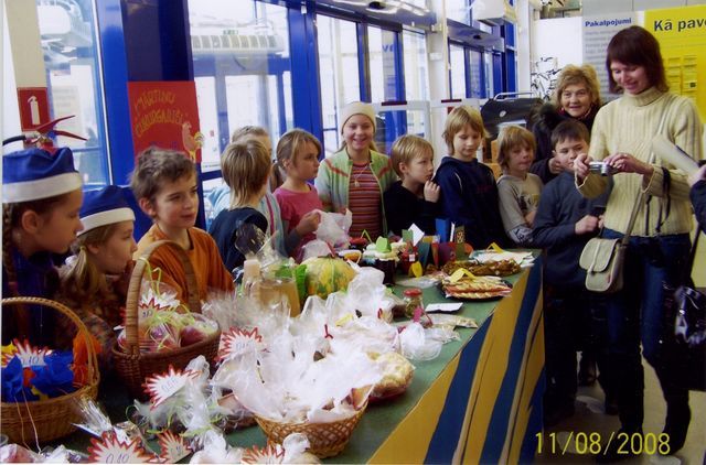 Sestdienas pusdienlaikā lielveikalā «K-Rauta» norisinājās mājās gatavotu un pašu audzēto gardumu tirdziņš, kurā piedalījās Tukuma 2. pamatskolas 3.a, 4.a un 4.b klases skolēni un viņu skolotājas - Ilze Gabaliņa, Liene Mētra un Zaiga Tarasova.