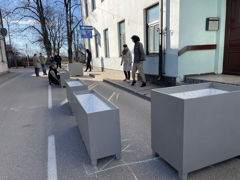 Baznīcas ielā Tukumā uzstāda lielizmēra puķu kastes