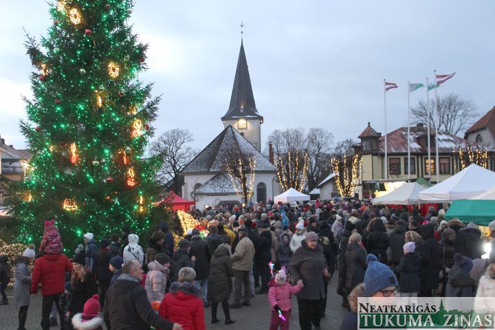 Jau krēsla pārņēma pilsētu, visur iedegās svētku rotājumi un cilvēki no malu malām sāka sapulcēties Brīvības laukumā pie svētku egles. 3. decembrī, kad mājās katrs iededza pirmo Adventes svecīti, bija pienācis laiks arī Tukuma lielo svētku egli degt krāšņās uguntiņās.