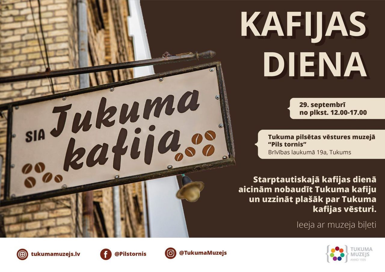 29. septembrī Starptautiskajā kafijas dienā Tukuma pilsētas vēstures muzejā «Pils tornis» (Brīvības laukumā 19a, Tukumā) no plkst. 12.00 līdz 17.00 iespēja nogaršot Tukuma kafiju, uzzināt vairāk par vietējās kafijas ražošanu un virtuāli apskatīt senlaicīgo kafijas grauzdēšanas iekārtu.