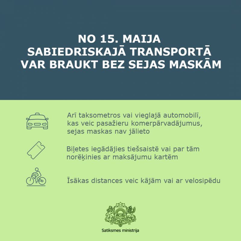 No 15. maija vairs nebūs jānēsā maskas sabiedriskajā transportā