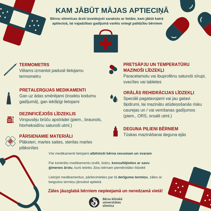 Bērnu slimnīcā Līgo svētku laikā prognozē lielu pacientu pieplūdumu. Jau kopš jūnija sākuma Neatliekamās medicīniskās palīdzības nodaļā diennakts laikā ierodas pat līdz 220 bērnu. Aptuveni 4% pacientu stāvoklis ir veselību apdraudošs un viņiem ir iemesls nekavējoties vērsties Bērnu slimnīcā, bet vairāk nekā 75% pacientu varētu ārstēties ģimenes ārsta uzraudzībā. Tā kā svētkos ne visi ģimenes ārsti ir pieejami, Bērnu slimnīcas mediķi aicina vecākus sagatavoties svētkiem pa īstam – pārbaudīt, kas atrodams mājas aptieciņā, un paņemt to līdzi, dodoties svinēt.